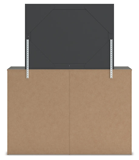 | Details | Includes dresser and mirror, Made with engineered wood (MDF/particleboard/plywood) and decorative laminate for the right balance of affordability and durability , Dark charcoal finish over replicated oak grain, Decorative laminate replicates natural or man-made material surfaces with consistent color, pattern and texture, Recessed hand grabs create hardware-less effect, 6 smooth-gliding drawers, Drawer interiors are lined with a faux linen laminate for a clean, finished look , Safety is a top priority, clothing storage units are designed to meet the most current standard for stability, ASTM F 2057 (ASTM International), Drawers extend out to accommodate maximum access to drawer interior while maintaining safety, Mirror attaches to back of dresser; can also be mounted on wall horizontally or vertically, Assembly required | |