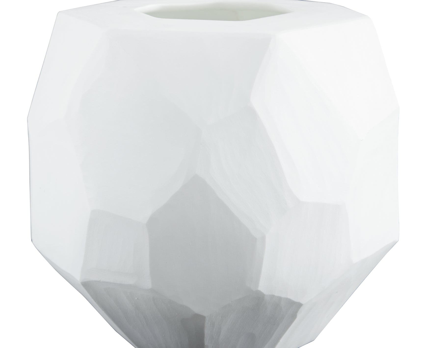 Equal parts elegant and organic, this vase brings ethereal beauty to your tabletop. Its white finish seamlessly harmonizes with existing accents. Meticulous craftsmanship creates the unique, faceted look of the hand-carved surface and makes each piece one of a kind.