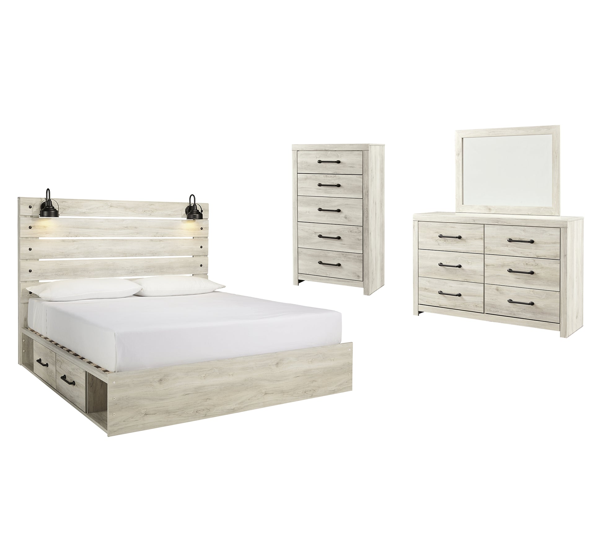 Ashbryn King Panel Storage Bed with Mirrored Dresser