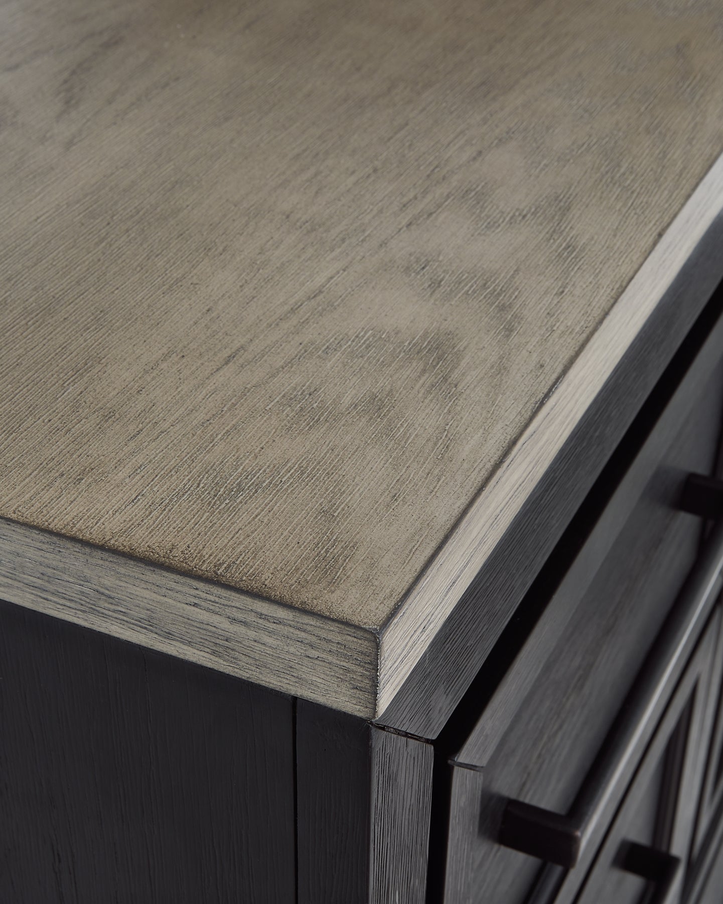 | Details | B989B4: Includes king panel headboard, storage footboard and rails with roll slats, Made with hardwood solids, select oak veneers and engineered wood, Two-tone finish (brushed black and dusty grayish brown wood tone), Headboard with picture frame moulding, Footboard with two deep drawers, Smooth-gliding soft-close drawers with fully finished interiors and dovetail construction, Sleek drawer pulls with black finish, Bed does not require additional foundation/box spring; accommodates most zero clearance adjustable bases with the addition of a bunkie board, Mattress available, sold separately, Assembly required, B989B1: Includes dresser and mirror, Made with hardwood solids, select oak veneers and engineered wood, Two-tone finish (brushed black and dusty grayish brown wood tone), Sleek drawer pulls with black finish, 11 soft-close, smooth-gliding drawers with fully finished interiors and dovetail construction (top drawers felt lined), 5 drawers with brushed black finish; 6 drawers with grayish brown wood tone, 3 drawers located behind each door, Mirror mounts to back of dresser, Assembly required, B989-48: Made with hardwood solids, select oak veneers and engineered wood, Two-tone finish (brushed black and dusty grayish brown wood tone), Sleek drawer pulls with black finish, 5 soft-close, smooth-gliding drawers with fully finished interiors and dovetail construction (top drawers felt lined), 3 pull-out trays (felt lined) and 2 adjustable shelves behind door, B989-92: Made with hardwood solids, select oak veneers and engineered wood, Two-tone finish (brushed black and dusty grayish brown wood tone), Sleek drawer pulls with black finish, 2 soft-close, smooth-gliding drawers with fully finished interiors and dovetail construction, 110V power supply with dual USB charging port, Power cord included; UL listed, | |